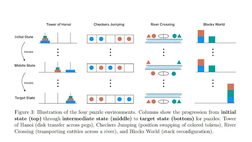 Low, medium, and high complexity problems are the three complexity regimes that have been discussed in the study. The researchers chose to employ a number of puzzles that can increase in difficulty in order to examine how LLMs and LRMs perform while handling a broad range of complications. The Tower of Hanoi was one such puzzle.