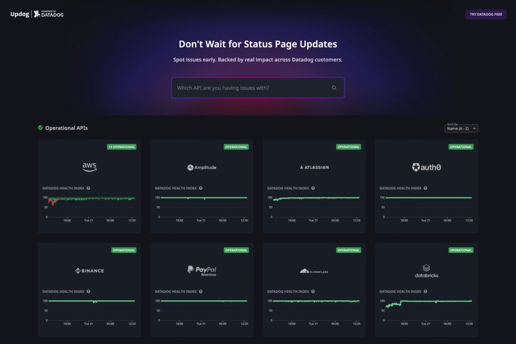 Datadog noted in a blog post that “Updog.ai recently surfaced an Amazon DynamoDB degradation 32 minutes before AWS updated its own status page.”
