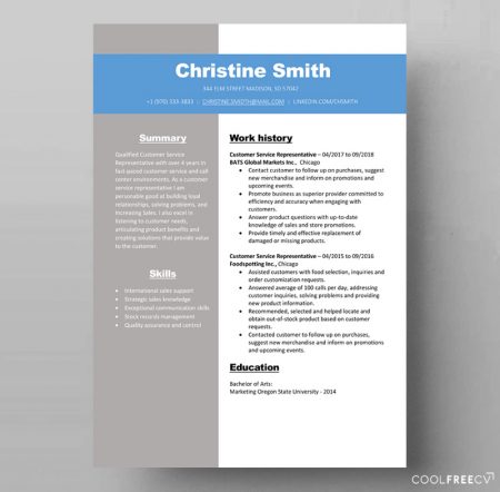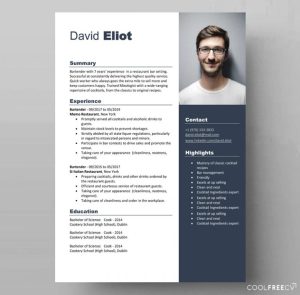 These free documents templates is the right choice for you if you are looking to accentuate a specified section of your document such as “Summary”, “Highlights” or “Experience”. The use of shades of blue colours is pleasing to the eye.