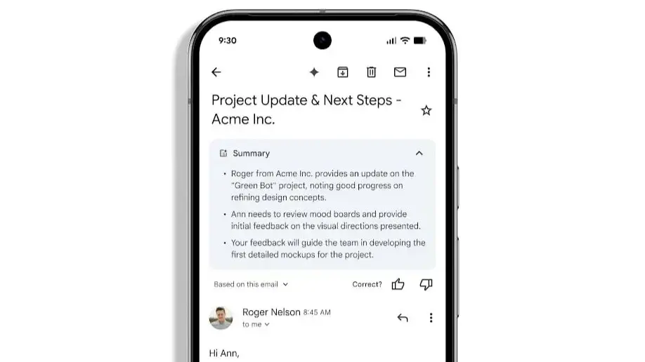 “Gemini summary cards” will now be automatically displayed by Gmail on mobile devices “when a summary could be helpful, such as with longer email threads.” If the card isn’t useful, you can collapse it from the upper-right corner.