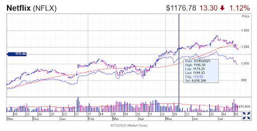 Netflix’s stock dropped 3.5% on the stock market today, closing at 1,190.08.