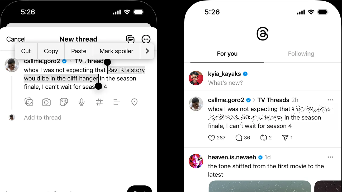 Mark Zuckerberg, the CEO of Meta, stated in a post that the microblogging site Threads is testing spoiler text that would allow you to conceal text or images that contain spoilers. By tapping an image or highlighting text and choosing the “mark spoiler” option, you will be able to blur content throughout the test.