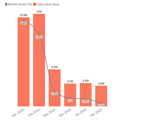 The deal gives 9mobile a calculated chance to make up ground without having to pay for the expansion of its nationwide infrastructure. Additionally, it makes room for a possible resurgence in the telecom rankings. Analysts say the competition for the third-largest operator is fierce, as Globacom’s market share dropped to an all-time low of 11.9% in April 2025, down to 20.6 million users.