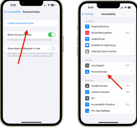In the Speech section, select Settings > Accessibility > Personal Voice.