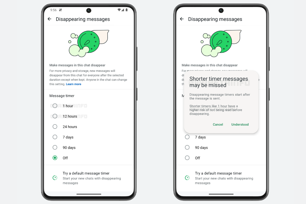 The messages could, however, vanish before the recipient has a chance to see them, which would disrupt the conversation. According to WABetaInfo, WhatsApp may provide a notice to users each time they choose the one-hour timer in order to keep them informed of such circumstances.