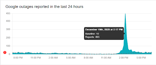Determining the spread of any significant outage is a challenge. As mentioned, the fact that three Google services are impacted by these notable spikes suggests that Google has an internal issue which is not known as of the moment of this post.